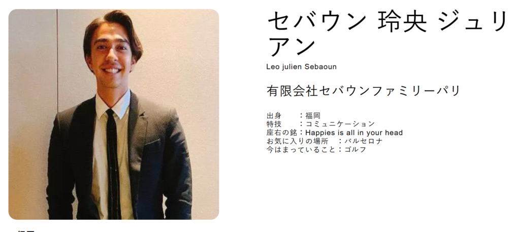 • 名前:セバウン 玲央 ジュリアン(Leo Julien Sebaoun)